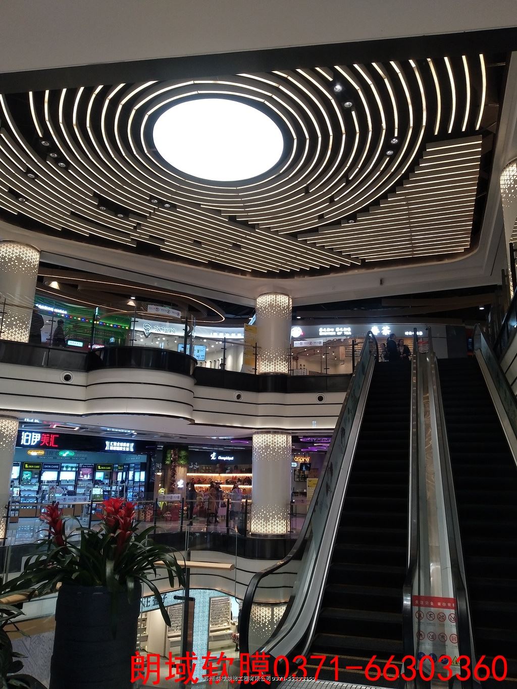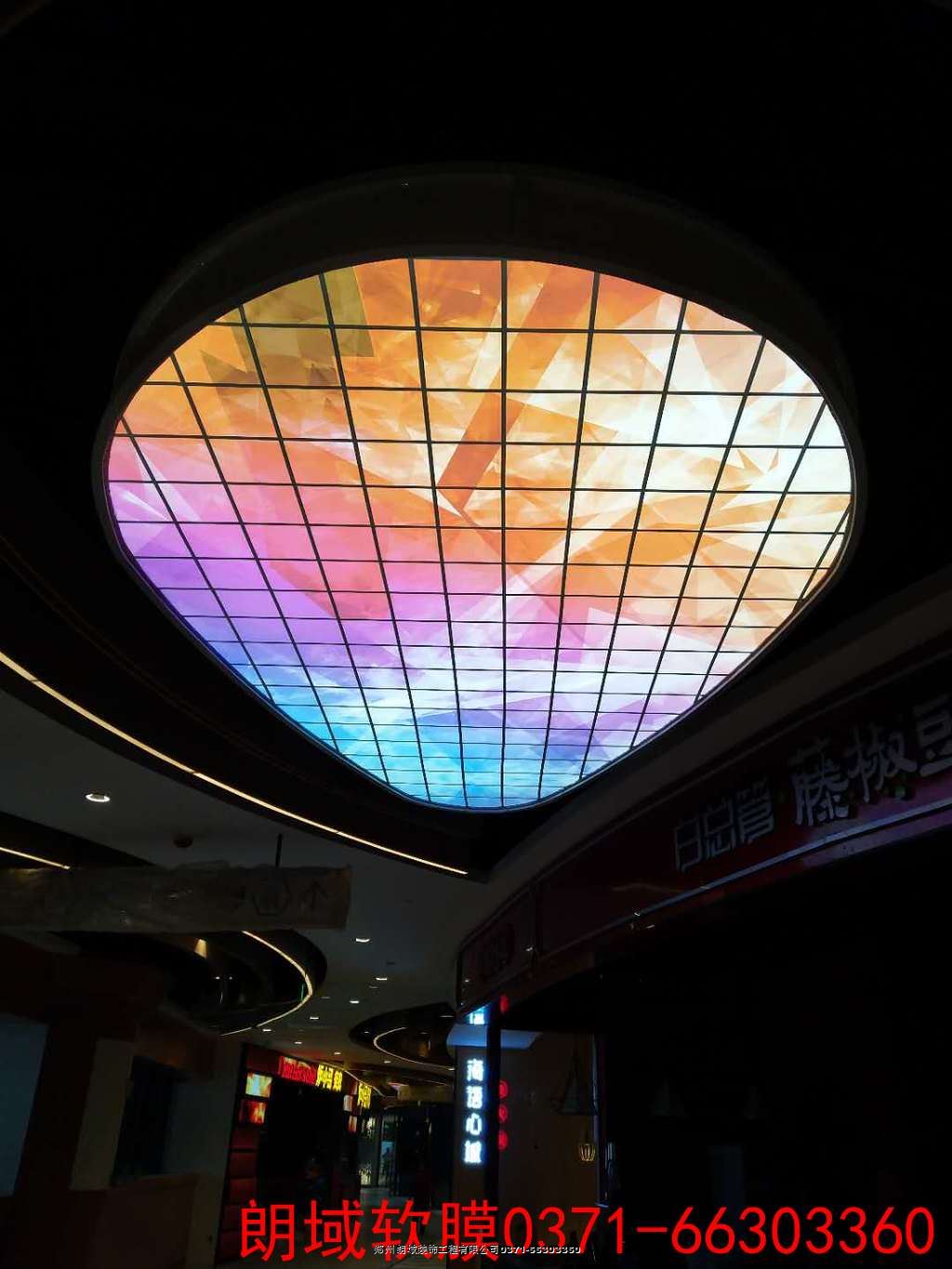 鄭州高新區(qū)朗悅公園道商場 公園茂 印花A級膜,窄條白透光膜造型。時尚溫馨。