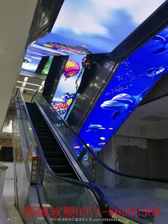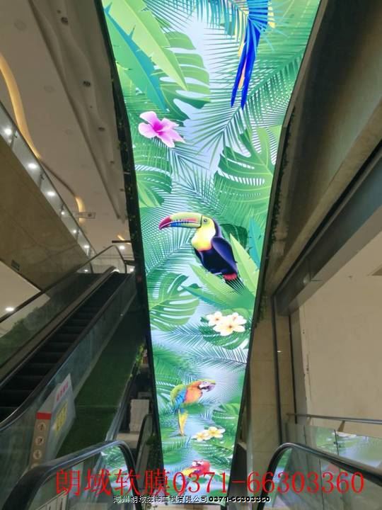 扶梯底部的綻放。整塊UV噴印軟膜。